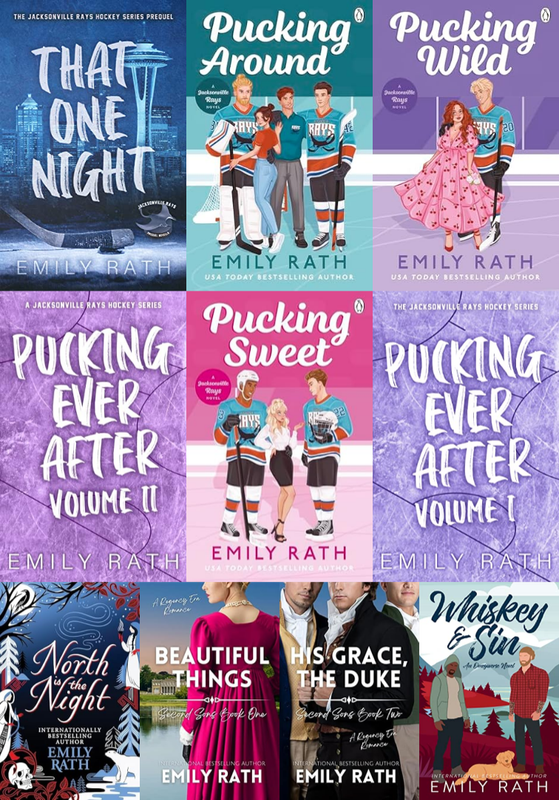 Emily Rath is a USA Today and international bestselling author whose chart-topping, sex-positive, queer-inclusive fantasy and romance novels include the Second Sons Regency romances, the Tuonela Duet fantasy novels, and the ‘why choose’ Jacksonville Rays Hockey Romances. A former university professor, she holds PhDs in Political Science and Peace Studies. Emily lives with her husband, son, and cat in Florida. They regularly comb the local beaches looking for shark teeth.