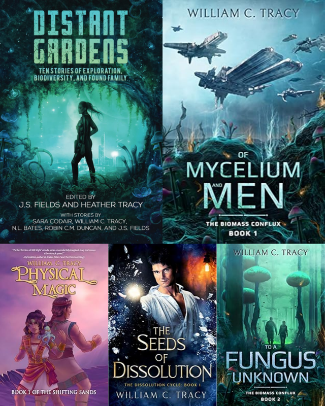 William C Tracy writes tales of the Dissolutionverse: a science fantasy series about planets connected by music-based magic instead of spaceflight. This series currently includes a three-book epic space opera cycle. It also includes five novelettes and novellas, including a coming of age story, tales of political intrigue, a Sherlock Holmes-like mystery, a Jules Verne style adventure. Several books include LGBT-friendly elements. His first epic fantasy from NineStar Press is Fruits of the Gods, about a land where magic comes from seasonal fruit, and two sisters plot to take down a corrupt government.
