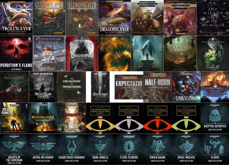 The Black Library - Warhammer 40,000 Volume 4 The Gotrek and Felix saga stands as one of the most iconic series in the Warhammer Fantasy setting, chronicling the doomed adventures of Gotrek Gurnisson, a disgraced dwarf Slayer seeking an epic death, and Felix Jaeger, his reluctant human companion and chronicler. William King's foundational entries—Trollslayer, Skavenslayer, Daemonslayer, and Dragonslayer—cement the duo's reputation through confrontations with legendary monsters and vile Chaos threats, blending grim humor, heroic fatalism, and fast-paced action. Later entries by David Guymer, such as Slayer and Curse of the Everliving, maintain that legacy while tying it into the Age of Sigmar transition, pushing Gotrek into new mythic territory. Performed masterfully by Jonathan Keeble and others, the saga remains a deeply engaging exploration of honor, madness, and companionship. In the Warhammer Horror line, authors like Kim Newman, Rachel Harrison, and Alec Worley craft unsettling narratives that plunge into the shadows of the Imperium and the Old World. Stories such as Perdition’s Flame, The Deacon of Wounds, and The Watcher in the Rain peel back the psychological and spiritual rot festering beneath society’s surface. Whether it’s the haunted stillness of The Oubliette or the dread-soaked aristocracy in Beasts in Velvet, these works emphasize atmosphere and inner torment. Newman’s Genevieve series stands out for blending vampire gothic with wry character study. This line offers a stark tonal shift from Warhammer's usual battle-driven drama, focusing instead on horror as existential, creeping, and deeply human. Finally, in Necromunda and Warhammer Crime, the stories turn toward the urban grime and criminal underbelly of the Imperium. Half-Horn, Expectatio, and Terminal Overkill reveal the brutal street-level lives of bounty hunters, gangers, and exiles in the hive cities, told through tightly plotted action-thrillers. Meanwhile, Dredge Runners, Bloodlines, and Flesh and Steel shift toward noir-style detective fiction, focusing on sleuths navigating corruption and violence in megalithic cities like Varangantua. These stories, performed by versatile casts and driven by hardboiled storytelling, showcase the diversity of the Warhammer universe—where conflict isn’t just galactic, but also deeply local, petty, and personal. Together with the curated collections—ranging from The Horus Heresy to Xenos—these entries offer rich, thematic variety for both long-time fans and new listeners.