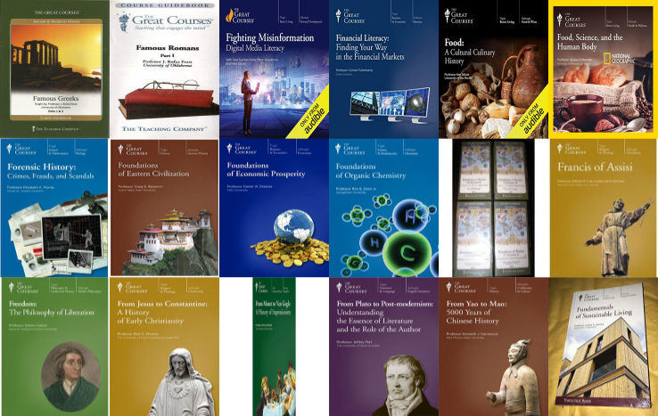 The Great Courses - The Modern Scholar - Volume - F This collection blends history, culture, philosophy, and practical learning, offering both sweeping overviews and specialized explorations. J. Rufus Fears’ Famous Greeks and Famous Romans revisit the towering figures of classical antiquity, while Kenneth Hammond’s From Yao to Mao and Craig Benjamin’s Foundations of Eastern Civilization highlight China and Asia’s long historical arc. Robert Bucholz’s Foundations of Western Civilization II complements these with the story of modern Europe, while Bart D. Ehrman’s From Jesus to Constantine and William Cook & Ronald Herzman’s Francis of Assisi trace Christianity’s evolution. Richard Brettell’s From Monet to Van Gogh brings art history into focus, and Louis Markos’ From Plato to Post-Modernism explores the philosophical and literary traditions shaping human thought. Together, these works provide a panoramic look at civilizations and the ideas that defined them. The collection also integrates modern concerns and practical knowledge. Connel Fullenkamp’s Financial Literacy and Daniel Drezner’s Foundations of Economic Prosperity address economic systems and markets, while Christine Whelan’s Finding Your Purpose emphasizes personal fulfillment. Food is explored through Ken Albala’s Food: A Cultural Culinary History and Alyssa Crittenden’s Food, Science, and the Human Body, merging history, anthropology, and science. Science and law intersect in Elizabeth Murray’s Forensic History: Crimes, Frauds, and Scandals, while sustainability and daily living appear in Lonnie Gamble’s Fundamentals of Sustainable Living. Joel Sartore’s Fundamentals of Photography II offers practical artistic skill-building, and Dennis Dalton’s Freedom: The Philosophy of Liberation ties political philosophy to enduring human struggles. Tara Susman-Pena, Mehri Druckman, and Nina Oduro’s Fighting Misinformation reflects today’s urgent need for digital media literacy. Taken together, the works embody both timeless intellectual traditions and pressing modern challenges, blending classical wisdom with contemporary relevance.