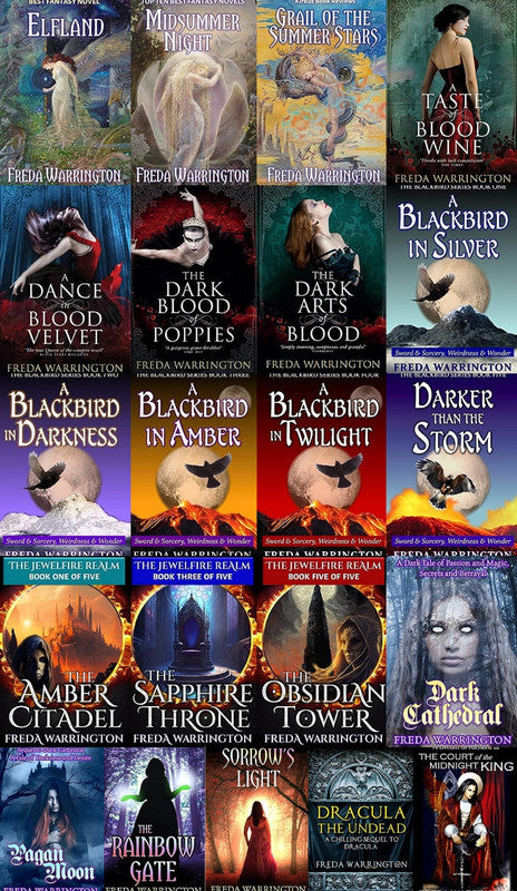 Freda Warrington is an award-winning British author, known for her epic fantasy, vampire and supernatural novels. “The Blood Wine books are addictive, thrilling reads that are impossible to put down and they definitely deserve more attention” – Worldhopping.net Her earliest novels, the Blackbird series, were written and published in the 1980s. In the intervening years she has seen numerous novels of epic fantasy, supernatural and contemporary fantasy, vampires, dark romance, horror and alternative history published. Her novel ELFLAND won the Romantic Times BEST FANTASY NOVEL Award in 2009, while her 1997 Dracula sequel DRACULA THE UNDEAD won the Dracula Society's BEST GOTHIC NOVEL Award.