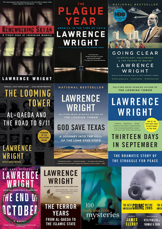 Lawrence Wright is a Pulitzer Prize-winning American author, screenwriter, staff writer for The New Yorker magazine, and fellow at the Center for Law and Security at the New York University School of Law. He is a graduate of Tulane University, and for two years taught at the American University in Cairo in Egypt. Wright graduated from Woodrow Wilson High School (Dallas, Texas) in 1965 and, in 2009, was inducted into Woodrow's Hall of Fame. A documentary featuring Wright, My Trip to Al-Qaeda, premiered on HBO in September 2010. Based on his journeys and experience in the Middle East during his research for The Looming Tower, My Trip to Al-Qaeda covers topics ranging from the current state of the regime in Saudi Arabia to the historic underpinnings of 9/11.