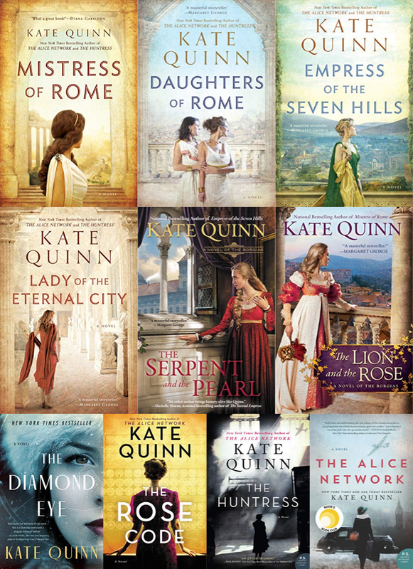 Kate Quinn is the New York Times and USA Today bestselling author of historical fiction. A native of southern California, she attended Boston University where she earned a Bachelor’s and Master’s degree in Classical Voice. She has written four novels in the Empress of Rome Saga, and two books in the Italian Renaissance, before turning to the 20th century with “The Alice Network” and “The Huntress.” All have been translated into multiple languages. Kate and her husband now live in San Diego with two rescue dogs named Caesar and Calpurnia, and her interests include opera, action movies, cooking, and the Boston Red Sox.