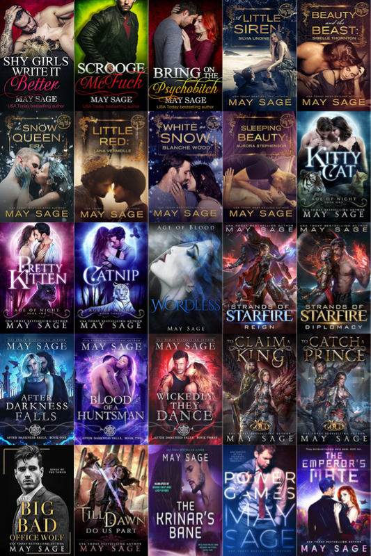 May SageMay Sage is a USA Today Bestselling romance writer dabbling in different genres, although the readers who follow every series know they’re all related. When she isn’t writing, she spends her time with her German Shepherd, her two Savannahs, and her black rescue cat, in England. She loves reading, ballet, running, and cake. Mostly, cake.