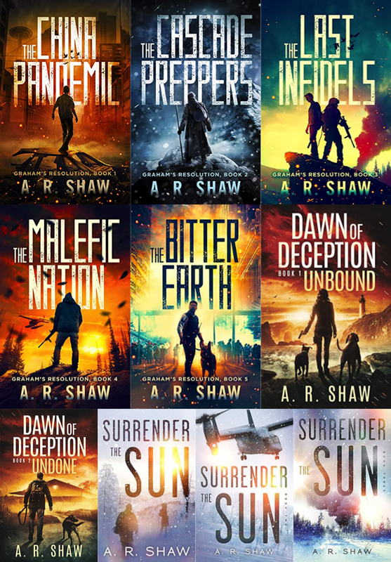 A.R. ShawIt's rare for a new author to pull a favorable Kirkus Review with a debut novel, but that's just what A. R. Shaw did with The China Pandemic; the first book in the Graham's Resolution series. Not only that, it hit number one in both Post-Apocalyptic and Dystopian genres in May of 2014. Not bad for a Texas girl and former Radio Operator, who served in the Air Force Reserves. Since then, she's written three more novels in the popular Graham's Resolution series, two Kindle World's Novellas in the Perseid Collapse world as well as an addition to the popular Wayward Pines Kindle World, Kate's Redemption. In the works now is a mystery novel and a new post-apocalyptic series, Surrender the Sun, as well as surprise additions to the Graham's Resolution series. She was stunned by the love of her fans for the fictional dog, Sheriff, from the Graham's Resolution series who now has his own Facebook Page run by fans titled Sheriff's K-9 Squad Room. It's a page to share all things regarding police dogs. She's been repeatedly warned, by the fans, never to consider axing the dog; the children are fair game, but the dog stays. Perhaps that's a tribute to her unique ability to write stories that make readers really care about the characters she develops. For now, A. R. Shaw lives with her family in eastern Washington State, but she may soon flee to the hills of Idaho perhaps to some quiet cabin in the woods.