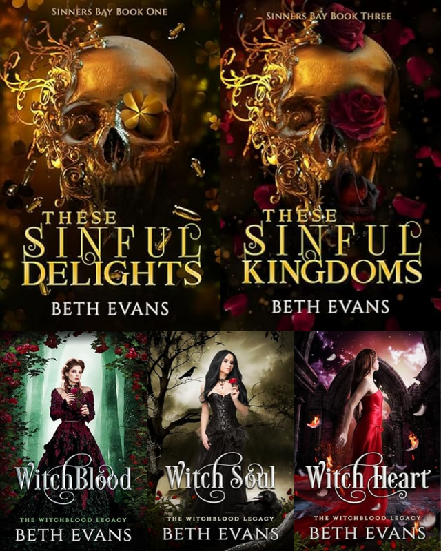 Beth Evans When I received the notice my divorce was final, I decided the best way to celebrate my freedom was to have one night of passion with a complete stranger, no strings attached so I choose the hottest club in town; Rapture, to find my prey. Little did I know the person I hooked was the head of the Irish Mafia who became haunted by the memory of our night. When I drunkenly return to Rapture with a broken heart, I find myself being drawn into the dark underground world of the Irish Mafia and the four men that rule it. As my normal, perfectly managed life slowly unravels, these men help me to reconnect with the woman I once was and she wasn't always innocent. But will I be able to rebuild a life I truly desire, or is it all just an illusion... These Sinful Delights is a why choose dark mafia romance where the heroine doesn't have to choose and set in the fictional world of Sinners Bay. Please read the author notes at the beginning of the book for CW. This is the first book in a series of interconnected standalones set in the same world.