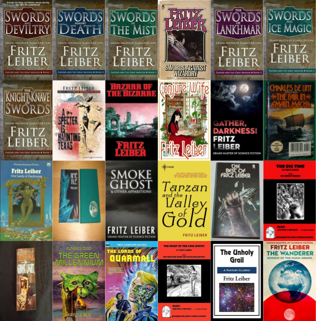 Fritz Leiber was one of the more interesting of the young writers who came into HP Lovecraft's orbit, and some of his best early short fiction is horror rather than sf or fantasy. He found his mature voice early in the first of the sword-and-sorcery adventures featuring the large sensitive barbarian Fafhrd and the small street-smart-ish Gray Mouser; he returned to this series at various points in his career, using it sometimes for farce and sometimes for gloomy mood pieces--The Swords of Lankhmar is perhaps the best single volume of their adventures. Leiber's science fiction includes the planet-smashing The Wanderer in which a large cast mostly survive flood, fire, and the sexual attentions of feline aliens, and the satirical A Spectre is Haunting Texas in which a gangling, exo-skeleton-clad actor from the Moon leads a revolution and finds his true love. Leiber's late short fiction, and the fine horror novel Our Lady of Darkness, combine autobiographical issues like his struggle with depression and alcoholism with meditations on the emotional content of the fantastic genres. Leiber's capacity for endless self-reinvention and productive self-examination kept him, until his death, one of the most modern of his sf generation.