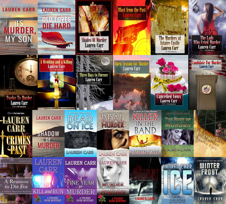 Lauren CarrLauren Carr is the international best-selling author of the Mac Faraday, Lovers in Crime, and Thorny Rose Mysteries—over twenty titles across three fast-paced mystery series filled with twists and turns! Book reviewers and readers alike rave about how Lauren Carr’s seamlessly crosses genres to include mystery, suspense, romance, and humor. Lauren is a popular speaker who has made appearances at schools, youth groups, and on author panels at conventions. She lives with her husband, and three dogs on a mountain in Harpers Ferry, WV.