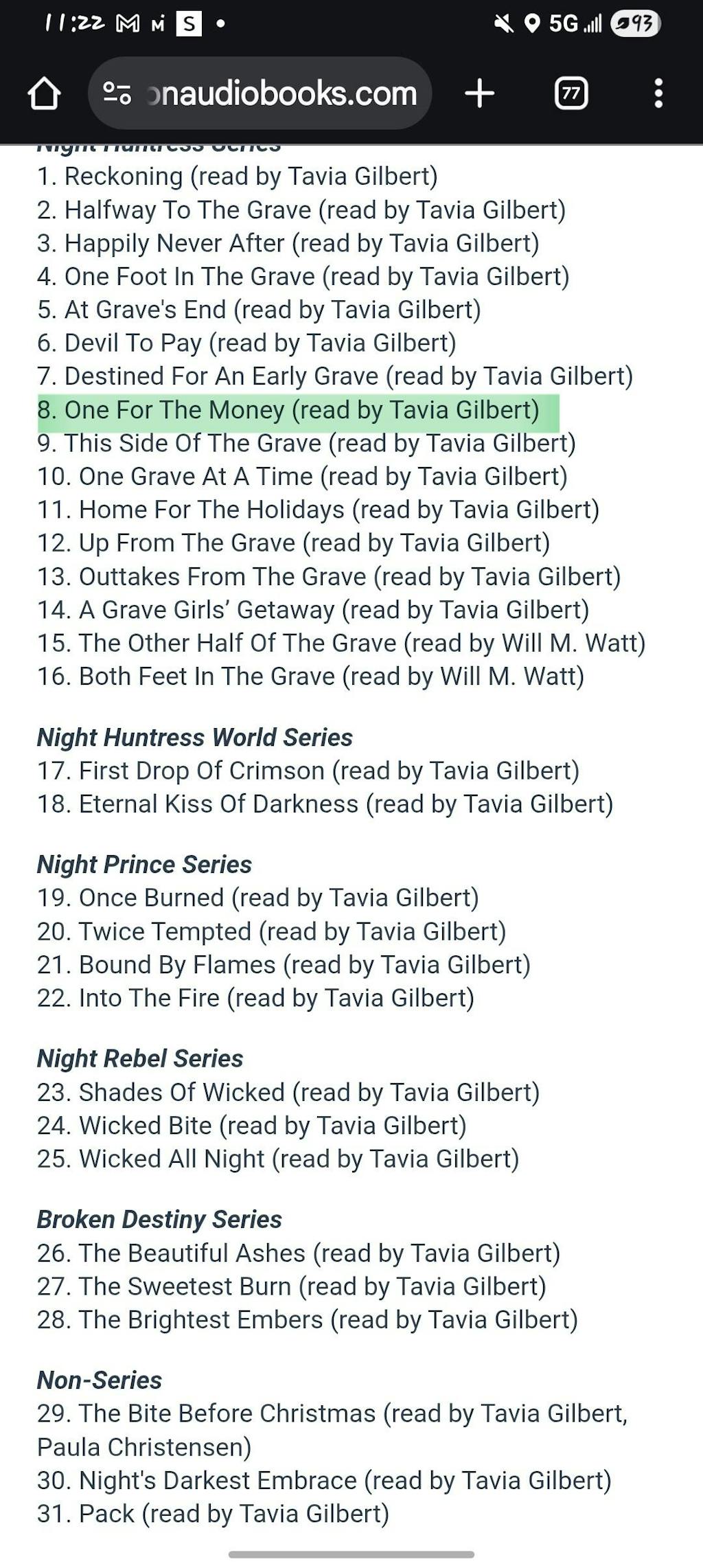 8. One For The Money (read by Tavia Gilbert)